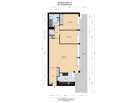 De entree heeft een ruime hal met een royale kastenwand. De bijzonder lichte woonkamer beschikt over een prettige plafondhoogte, vele raampartijen waardoor er veel licht in de woonkamer valt, en een air conditioner voor optimaal comfort in warme zomers. De lichte, luxe keuken is voorzien van diverse inbouwapparatuur (Bosch en AEG) en staat in open verbinding met de woonkamer. U treft de volgende inbouwapparatuur: 4-pits inductiekookplaat, afzuiging, combimagnetron, koelkast met vriezer en een vaatwasser. De hal, woonkamer en overloop zijn voorzien van een hardhouten vloer gelegd in visgraad motief. Via de woonkamer bereikt u de overloop met twee slaapkamers, een apart toilet en een ruime badkamer voorzien van een ligbad, ruime douche, wastafel, wasmachine en droger. Naast de ruime slaapkamer, is er een iets kleinere slaapkamer nu in gebruik als kantoor / logeerkamer.