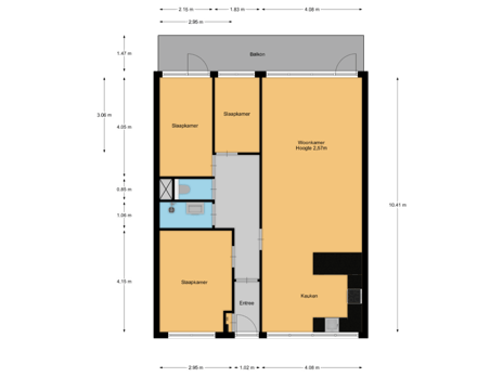 Aan de achterzijde bevinden zich nog twee slaapkamers: een ruime slaapkamer met eveneens toegang tot het balkon en een derde kamer die ideaal is als werkkamer of hobbyruimte. De badkamer en het separate toilet completeren de indeling.