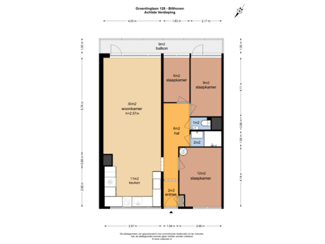 Binnenkomst in een ruime hal die toegang geeft tot alle vertrekken. De lichte en ruime woonkamer grenst aan een breed balkon op het westen, met een vrij uitzicht en heerlijke middag- en avondzon. De open verbinding met de moderne keuken geeft het geheel een ruimtelijk en eigentijds karakter. De keuken is uitgevoerd in een L-opstelling en beschikt over diverse inbouwapparatuur.