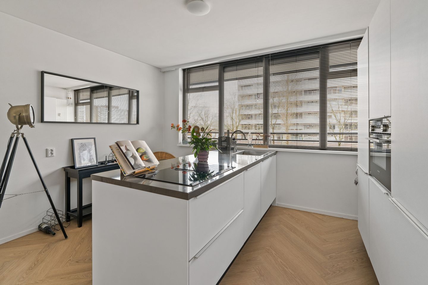 Dit stijlvolle driekamerappartement is in 2020 op hoog niveau gemoderniseerd en voorzien van een complete renovatie van zowel de keuken als de badkamer. Beide ruimtes zijn afgewerkt met hoogwaardige, luxe materialen. De open keuken is uitgerust met alle gewenste Siemens inbouwapparatuur.