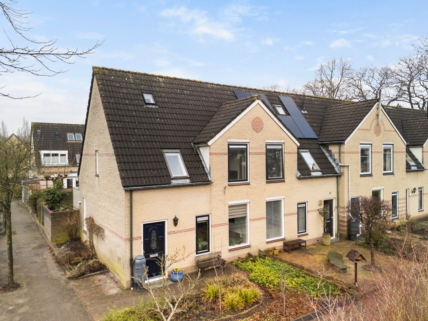 In een mooie en groene omgeving is te koop deze sfeervolle en goed onderhouden, uitgebouwde hoekwoning met vrijstaande stenen berging, voortuin en zonnige achtertuin op het westen.