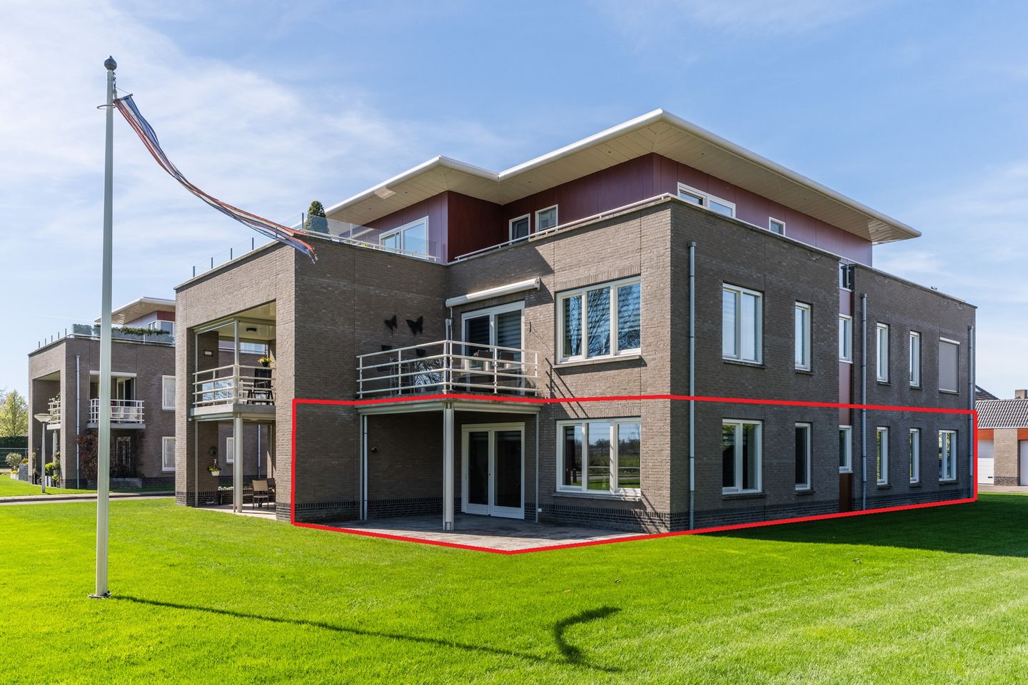 Het complex is omgeven door groen, met nette voetpaden en gazons. Aan de voorzijde zijn bovendien voldoende extra parkeerplaatsen beschikbaar voor bezoekers.
