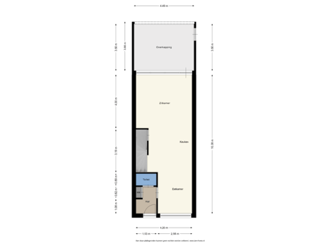 - 40 m² (9,00 meter diep en 4,50 meter breed)