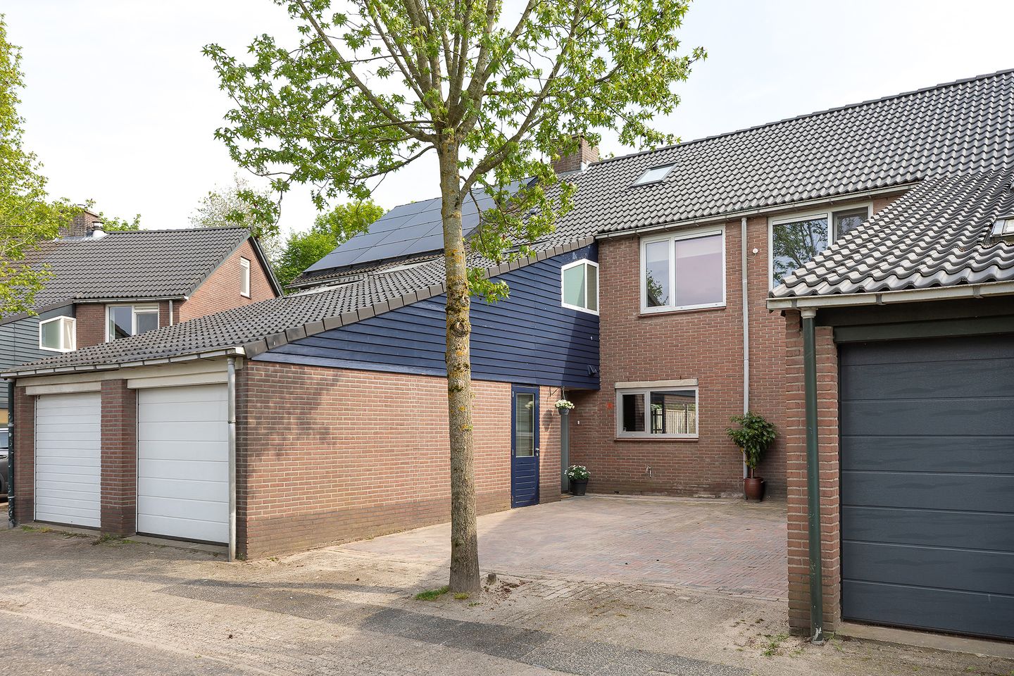 Entree, hal met meterkast en garderobe, toegang tot de hobbykamer en de berging, modern vrij hangend toilet, lichte woon-/eetkamer en open keuken voorzien van vaatwasser, inductiekookplaat en oven, via de schuifpui bereikt u de zonnige tuin met een terras, een gazon en een gezellige overkapping met een loungehoek achterin de tuin.