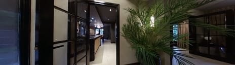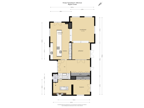 Indeling: Indrukwekkende entree met een plafond van ca 5.30 meter hoog, gasten-WC met fontein en een ruime 4m brede garderobe waar de meterkast in is verwerkt. Grote woon/droomkeuken met dubbele deuren naar het terras. Deze Poggenpohl keuken is voorzien van allerhande Gaggenau apparatuur, te weten, een 5-pits gasfornuis, een 3-zones wijnklimaatkast, hoge druk stoomoven, Quooker en inbouw espresso machine van Miele, 2 vaatwassers en 2 spoelbakken. Groot eeteiland met genoeg plek voor 8 personen; een ware eyecatcher.