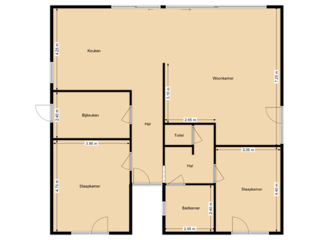 - 3 kamers (2 slaapkamers)