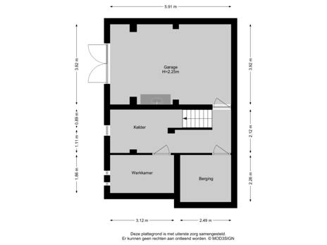 In het souterrain bevindt zich de voormalige garage (nu hobbykamer), aangevuld met meerdere praktische kelderruimtes. Een multifunctionele ruimte geschikt voor kantoor, praktijk/kantoor, hobby/fitness ruimte of gastenverblijf of ruimte voor de au-pair.