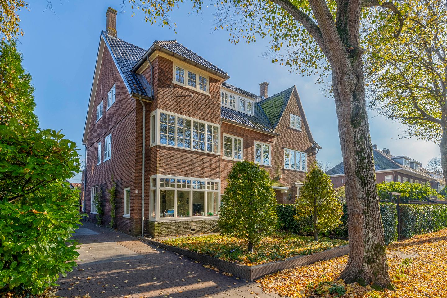 In a unique and practical location in Bloemendaal, this spacious well-maintained semi-detached family home is situated on a generous plot of 521 m² of own land. At the front is a front garden, a very wide driveway for several cars, a detached stone garage (6.38mx3.00m and 2.48m high) and a side gate to the fantastic and very beautifully landscaped, wide backyard. The approx. 25m sunny deep back garden has a walkway to the additional purchased garden, providing a sea of space and several terraces where you can enjoy the sun. The well-maintained and modernised corner mansion still has several authentic details from the 1930s and has good light due to the many windows. An original stairwell window provides beautiful light in the authentic stairwell. Nearby are the village centre of Bloemendaal, the railway station, several schools and roads. In short, a perfect family home with 6 bedrooms in a popular village.