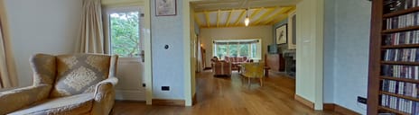 Vanuit de ruime hal, loop je de prachtige woonkamer binnen voorzien van keuken en serre. De woonkamer is onderverdeeld in verschillende leefruimtes met ieder zijn eigen stijl. Door bepaalde keuze van kleuren en de prachtige houten balken voel je meteen de warmte in huis. Op de eerste verdieping zijn vier ruime slaapkamers, ideaal om een groot gezin te waarborgen. Tevens is hier ook de badkamer. Op de bovenste etage is er een ruime zolder die fungeert als royale slaapkamer met balkon, die uitkijkt over het prachtige groen.