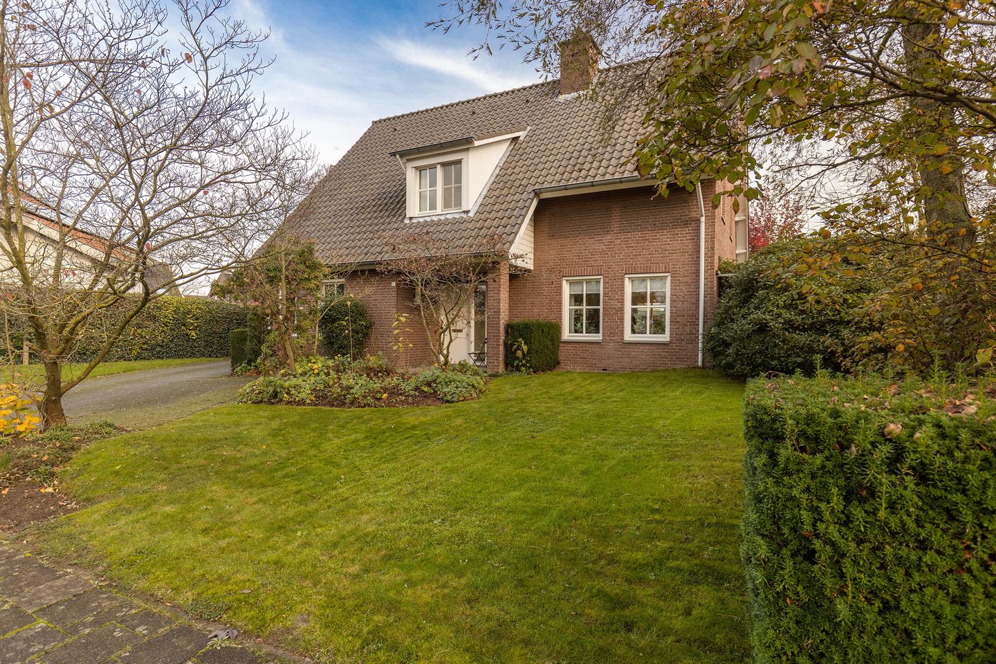 De woning heeft aan de linkerzijde een oprit met ruimte voor meerdere auto's, waardoor parkeren nooit een probleem zal zijn. Een vrijstaande garage met carport en tuinberging, waar je al je spullen kunt opbergen.