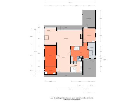 Via de overkapping aan de voorzijde betreed je de royale hal. Vanuit hier zijn de inpandige berging en een extra slaap- of werkkamer bereikbaar. Deze kamer grenst direct aan de overkapping en de tuin, waardoor dit ook een fijne tuinkamer of praktijkruimte kan zijn.