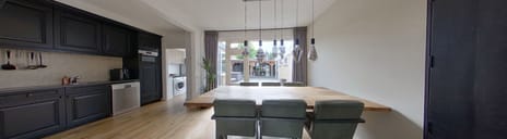 - Inbouwapparatuur keuken: 4-pits gaskookplaat, afzuigkap, vaatwasser, combi-oven/magnetron en koelkast;