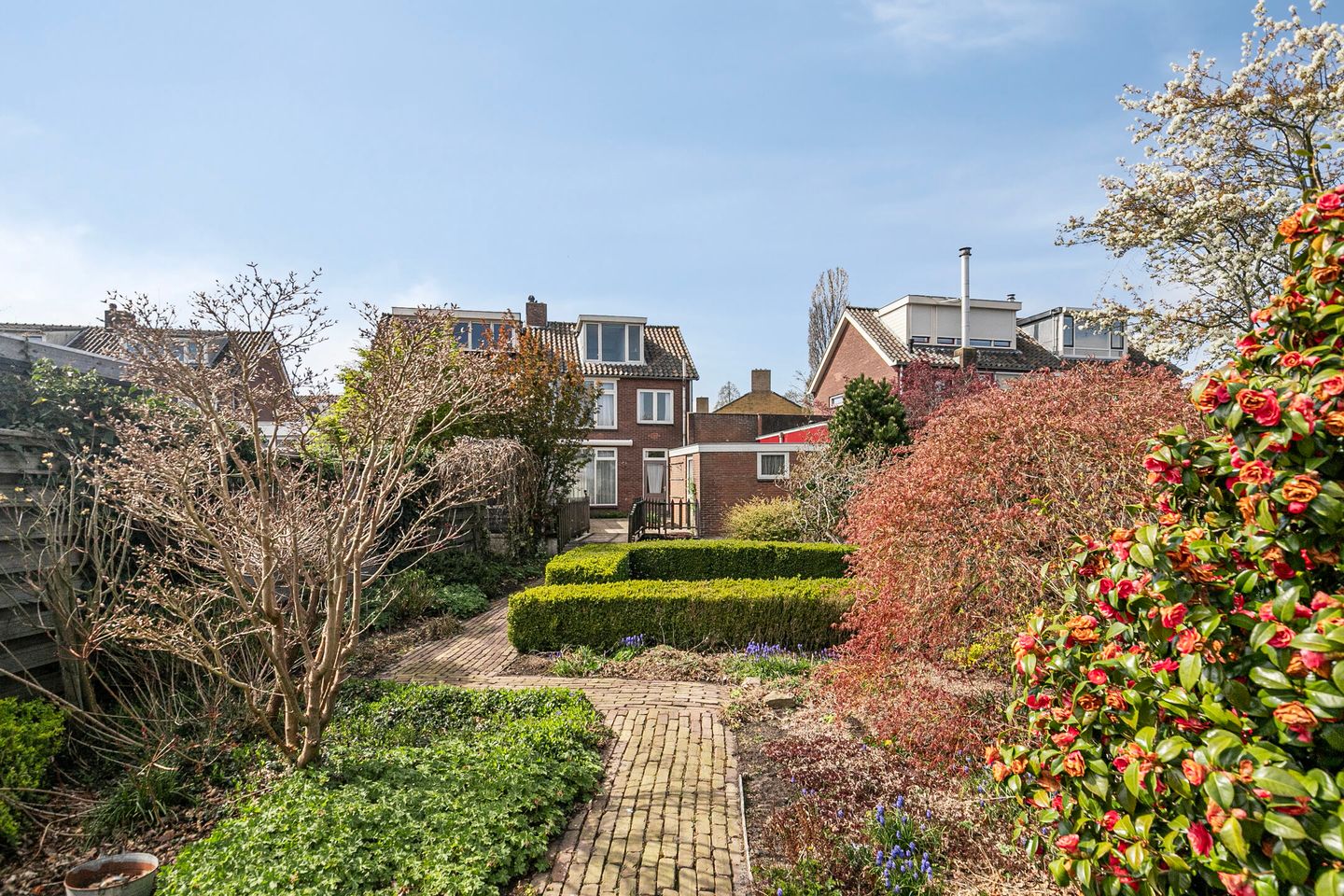 De royale achtertuin, bereikbaar via de keuken, is een van de grootste pluspunten van dit huis. De achtertuin is zeer diep en beschikt zelfs over een eigen bruggetje. Dit is een droom voor tuinliefhebbers, waar je kunt genieten van de frisse lucht en ruimte voor tuinieren of spelen.
