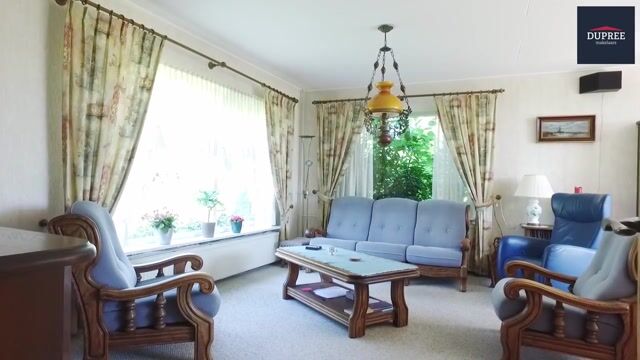 De woonkamer is van het type doorzon en beschikt over raampartijen aan drie zijden, wat zorgt voor veel lichtinval en een prachtig uitzicht over de weilanden. Aan de achterzijde bevindt zich een deur naar het onderheide terras. Tevens is er een vaste kast aanwezig.