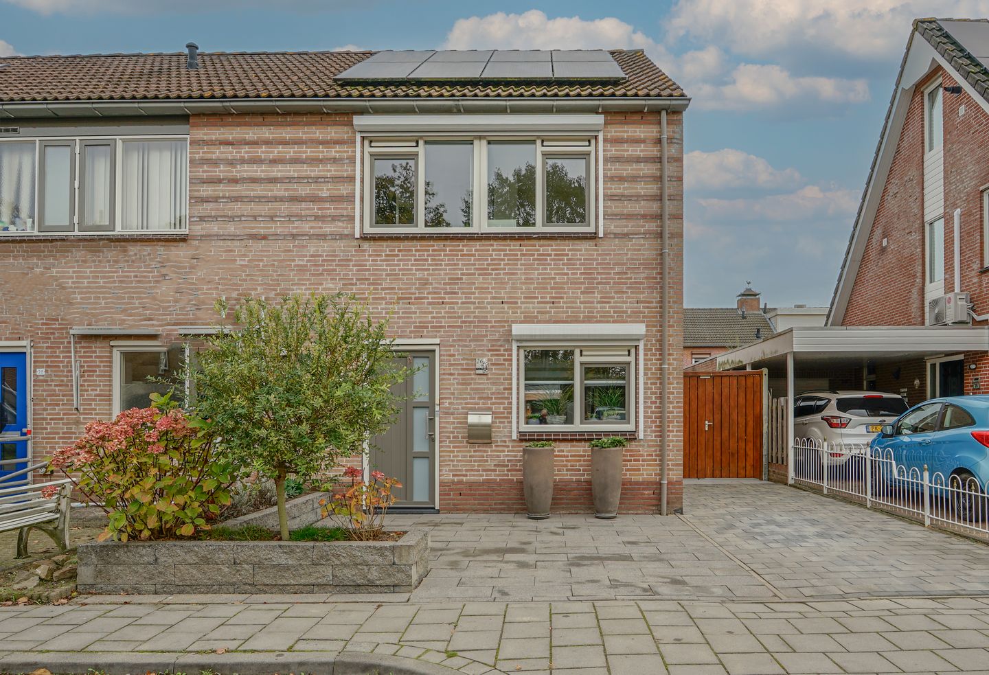 Aan de voorzijde is de woning voorzien van een fraai aangelegde tuin met straatwerk, plantenborder en oprit.