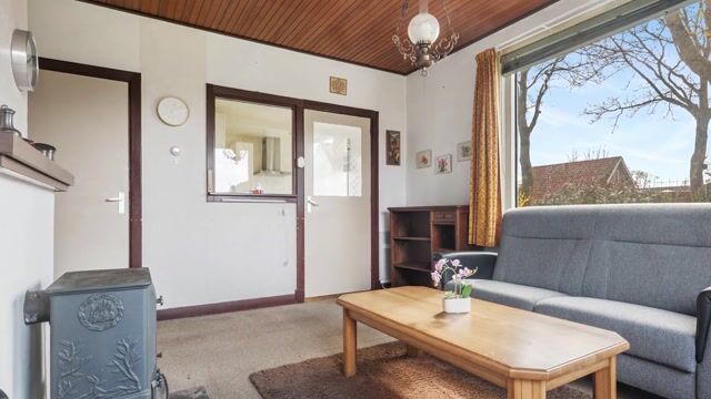 Via de entree/hal betreedt u de woning. De woonkamer is voorzien van een houten vloer, houtkachel en een praktische voorraadkast. De keuken beschikt over een 4-pits kookplaat, afzuigkap (2024) en een koelkast. Aansluitend bevindt zich de bijkeuken met witgoedaansluiting, cv-opstelling (Intergas, 2011, eigendom) en toegang tot de tuin.