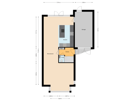 - 63 m² (7,50 meter diep en 8,40 meter breed)