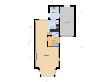 - 87 m² (10,30 meter diep en 8,40 meter breed)