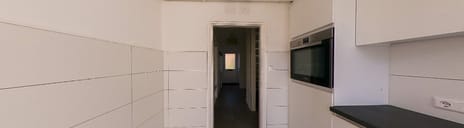 In de hal vindt u de meterkast, de trapopgang en de toiletruimte. Vanuit hier loopt u door naar de gesloten keuken en de woonkamer.