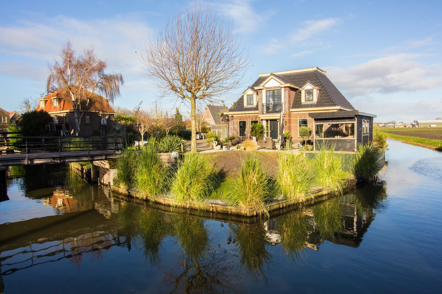 Tuin: het terrein kunt u via een brug aan de voorzijde bereiken. U heeft verschillende terrassen tot uw beschikking. Door de grootte van de tuin heeft u diverse mogelijkheden om lekker van de zon te genieten. Het doorgaand vaarwater is natuurlijk een leuke extra! Fijn van huis uit met een bootje vertrekken naar de binnenstad van Enkhuizen, het streekbos of het natuurgebied de Weelen.