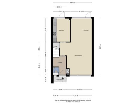 - 45 m² (9,00 meter diep en 5,00 meter breed)