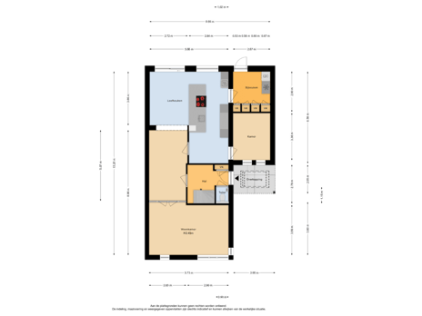 - 153 m² (17,00 meter diep en 9,00 meter breed)