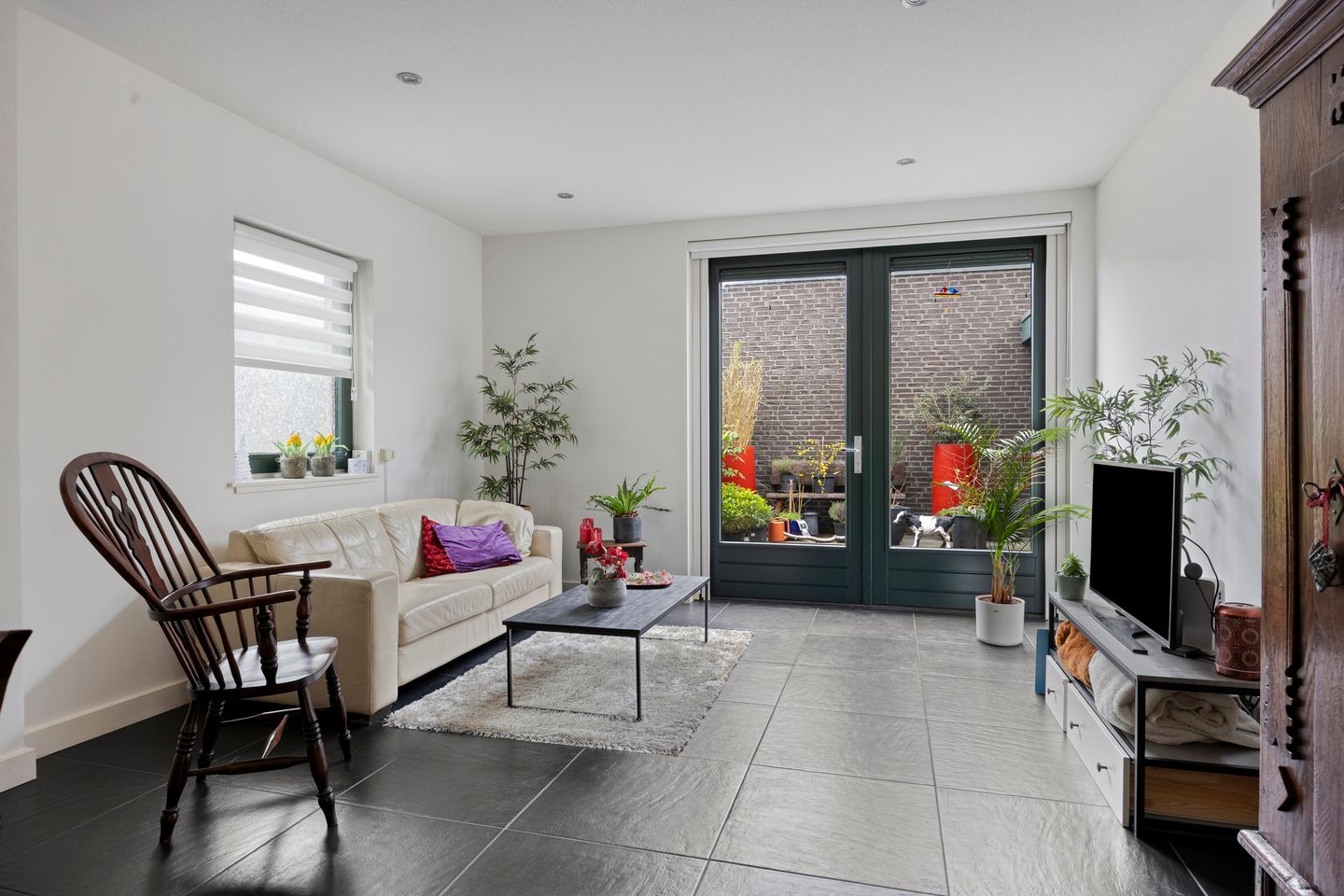 De woonkamer ligt aan de tuinzijde en is lekker licht dankzij de dubbele tuindeuren. De vloerverwarming zorgt het hele jaar door voor een aangename temperatuur.