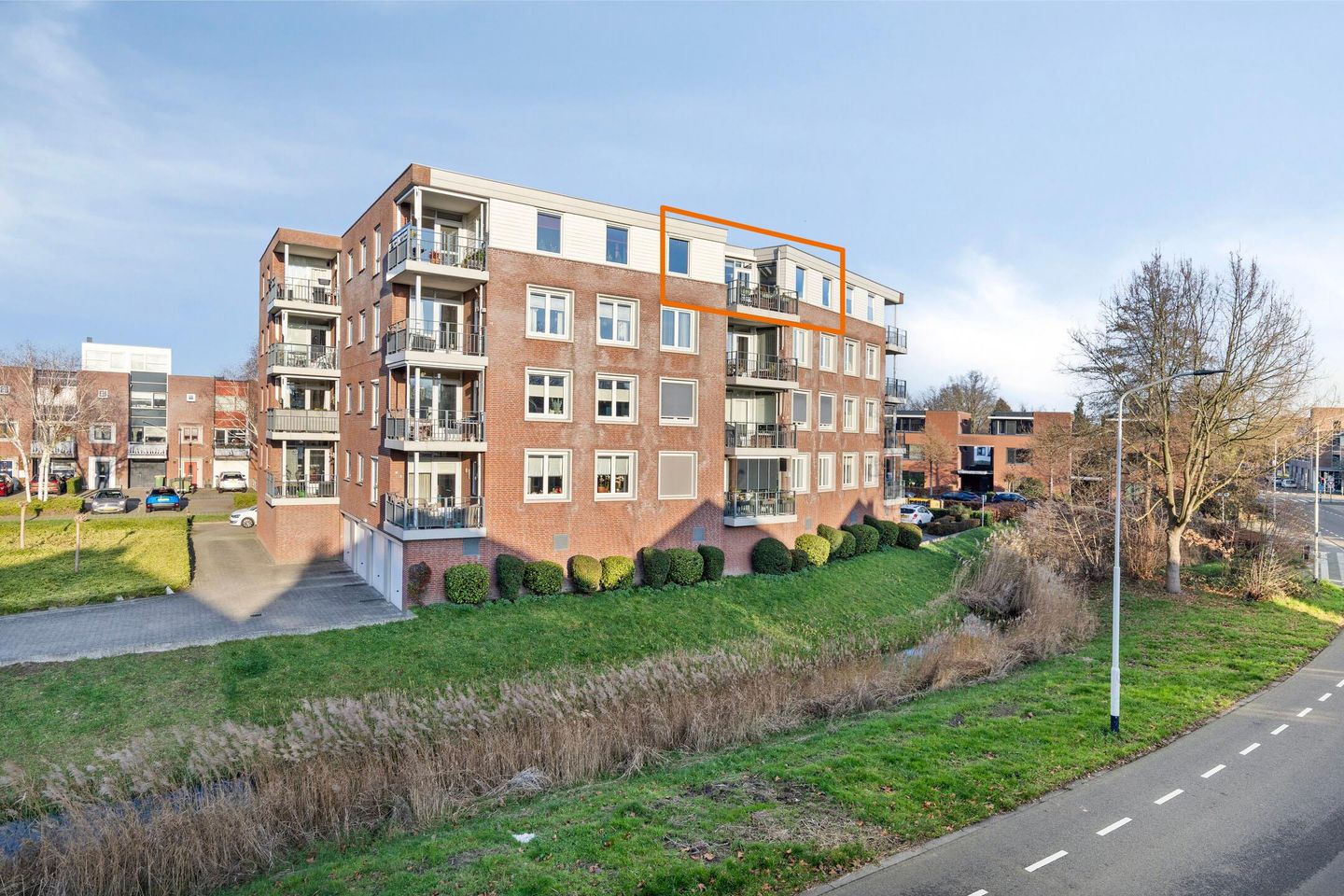 Het appartement is gelegen op de vierde verdieping van het appartementencomplex
