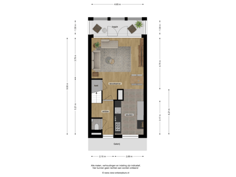 - Deze vrijblijvende informatie is met de grootste zorg samengesteld, echter aan de inhoud hiervan kunnen geen rechten worden ontleend. Maatvoeringen zijn slechts indicatief en kunnen afwijken van de werkelijke situatie en zijn uitsluitend bedoeld om een indruk te geven van de indeling. Aan deze informatie kunnen geen rechten worden ontleend.