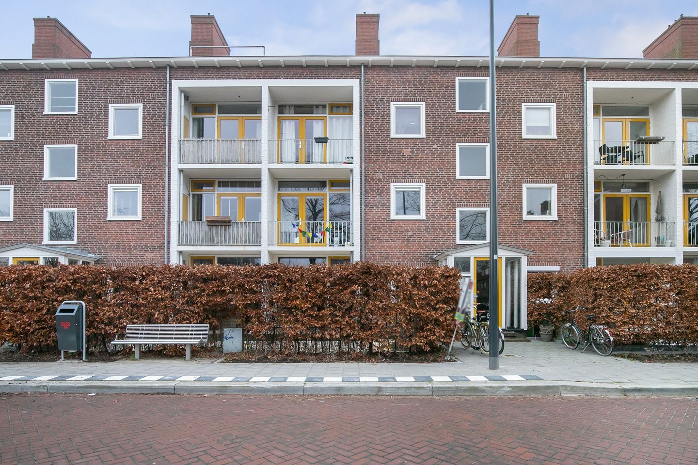 Aan de buitengevel van het appartementencomplex is het tableau met de brievenbussen en de intercom gesitueerd. Bij binnenkomst in de centrale hal heeft u toegang tot de voordeur van het appartement.