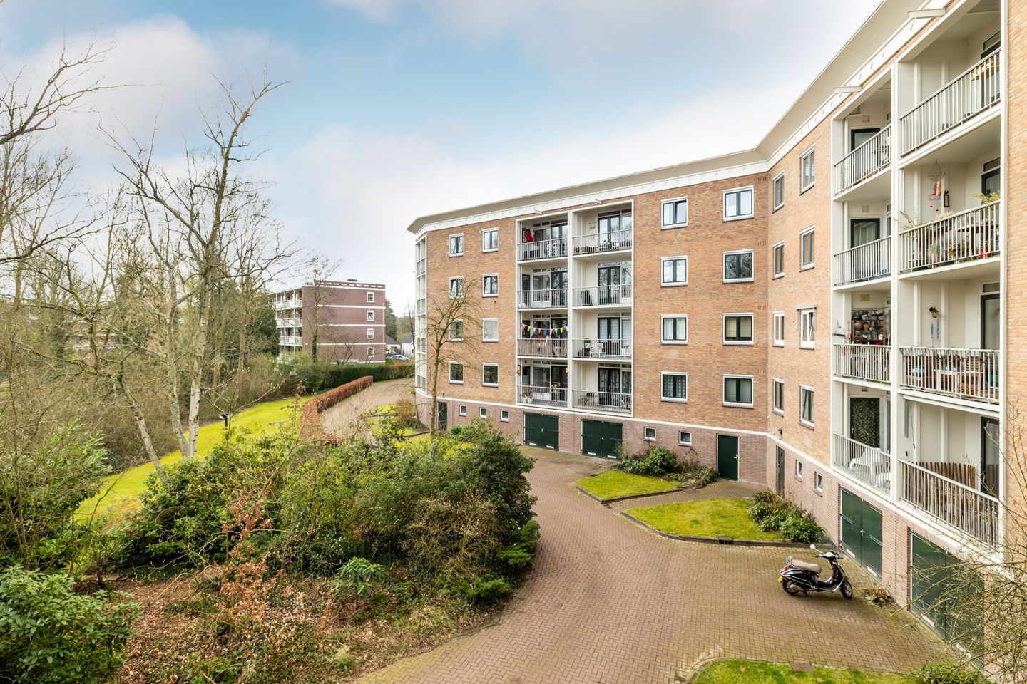 Het appartementencomplex is voorzien van een grote gemeenschappelijke tuin rondom.