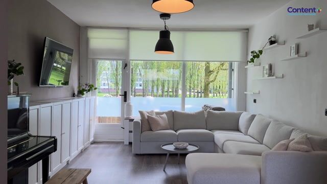 De woonkamer vormt het hart van het appartement en is prettig van formaat. Dankzij de grote raampartijen valt er veel natuurlijk licht binnen, wat zorgt voor een aangename en open sfeer. Er is voldoende ruimte voor een comfortabele zithoek en een eethoek, waardoor de woonkamer geschikt is voor zowel ontspannen als gezellig samenzijn.