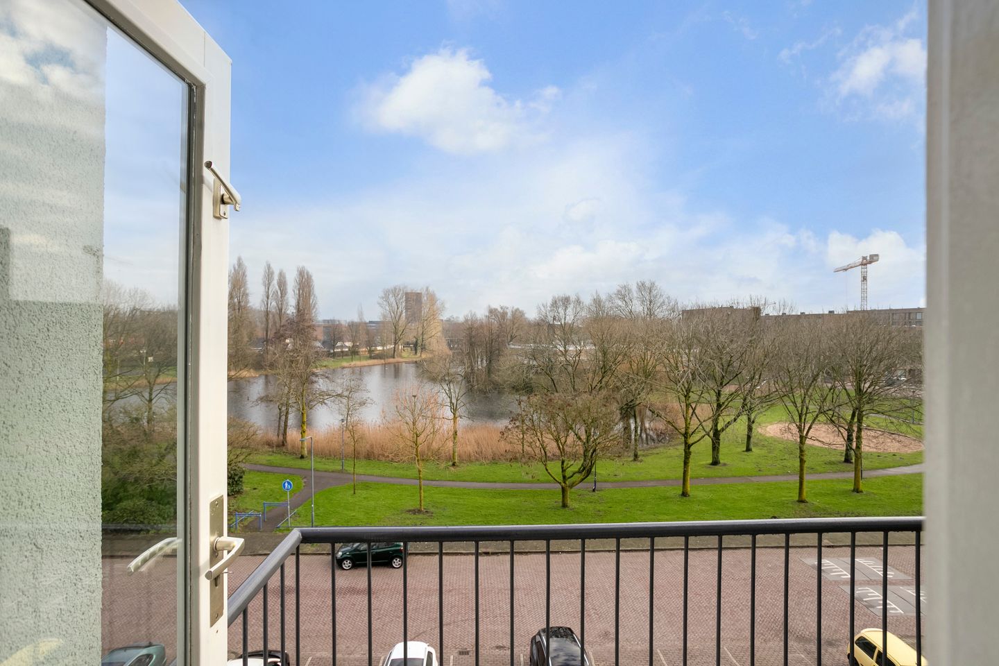 Heerlijk lichte woonkamer met zeer veel lichtinval middels de grote raampartij en een prachtig vrij uitzicht over het 'Liniepark'. De woonkamer is voorzien van een laminaatvloer en staat in verbinding met de hal en slaap-/woon-/eetkamer.