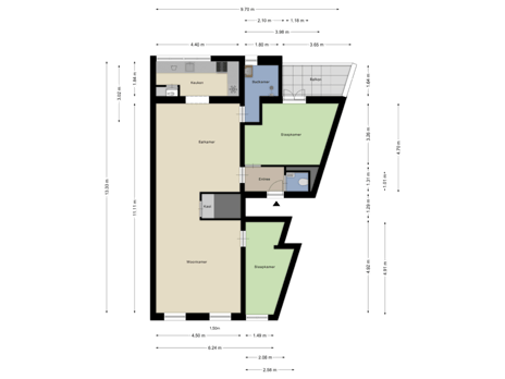 De eerste slaapkamer geeft toegang tot het balkon en is gesitueerd aan de achterzijde van de woning. De tweede slaapkamer is vanuit de woonkamer toegankelijk en is aan de voorzijde gesitueerd.