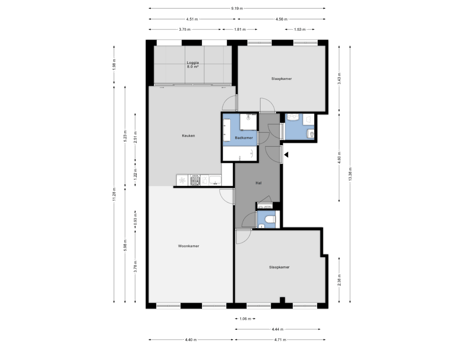 3 kamers (2 slaapkamers)
