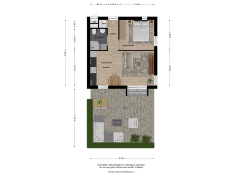 - Deze informatie is door ons met de nodige zorgvuldigheid samengesteld. Onzerzijds wordt echter geen enkele aansprakelijkheid aanvaard voor enige onvolledigheid, onjuistheid of anderszins, dan wel de gevolgen daarvan. Alle opgegeven maten en oppervlakten zijn indicatief.