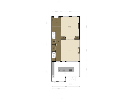 - 175 m² (25,00 meter diep en 7,00 meter breed)