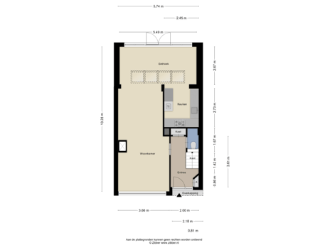 - 63 m² (12,50 meter diep en 5,00 meter breed)