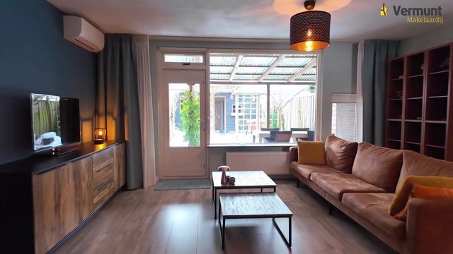 De sfeervolle woonkamer biedt rust en privacy. De laminaatvloer loopt door naar de keuken en zorgt voor een mooie eenheid. Er is een fijne zithoek aan de achterzijde met zicht op de tuin en een eetgedeelte nabij de keuken. Extra comfort komt van de Daikin airco-unit en de handige trapkast. Via de grote ramen heb je een prettig uitzicht op de straat en tuin.