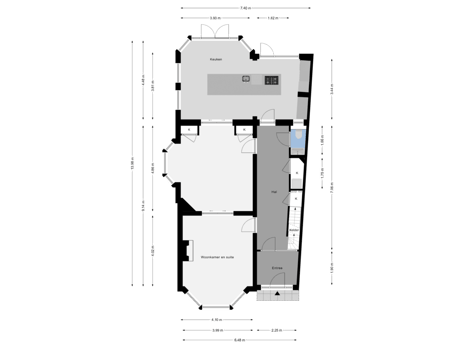 - 110 m² (9,14 meter diep en 12,00 meter breed)