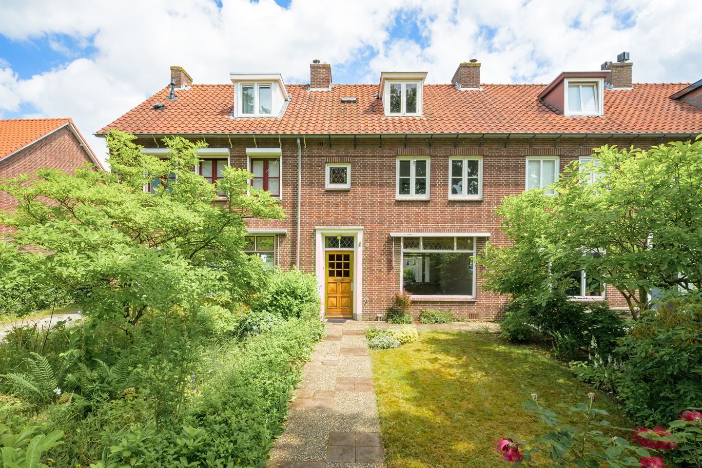 Karakteristieke uitgebouwde tussenwoning met grote voortuin en maar liefst 20.00m diepe achtertuin met berging en achterom.