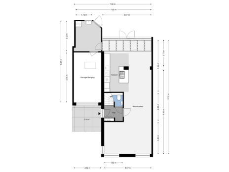 - 107 m² (15,35 meter diep en 8,08 meter breed)