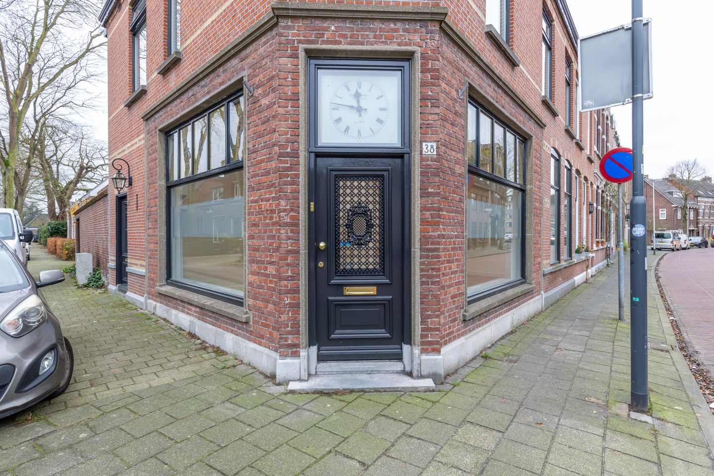 Er zijn 2 entree deuren, 1 aan de Rozenlaan 2 en 1 aan de Prins Hendrikstraat 38.