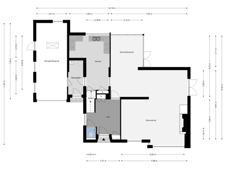 Via de bijkeuken kom je in de garage, die is voorzien van een kanteldeur en een handige vliering. De Intergas combiketel en aansluitingen voor wasapparatuur bevinden zich eveneens in de bijkeuken.