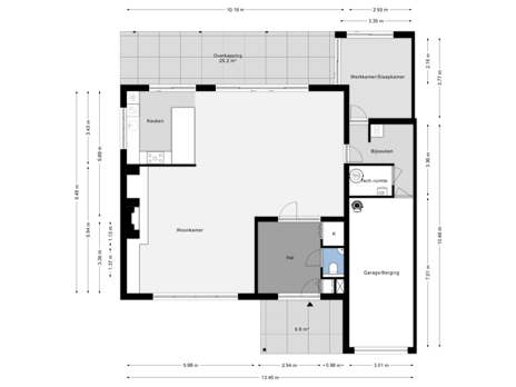 - 283 m² (16,65 meter diep en 17,00 meter breed)