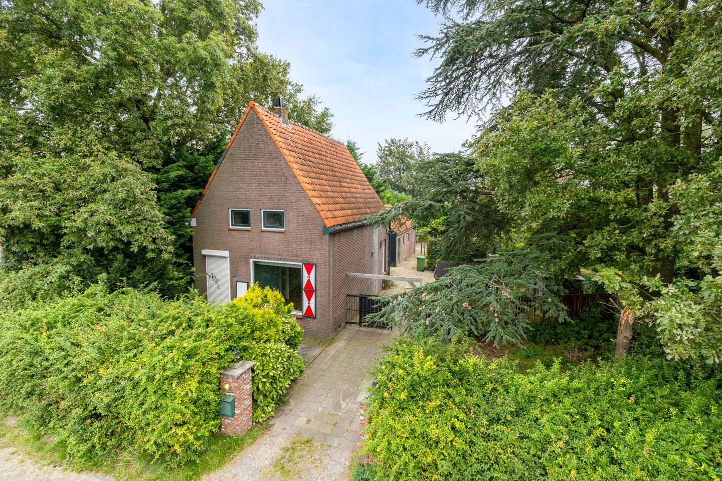 Flinke tuin rondom met de hoofdtuin aan de zijkant en met name achterkant, op het noordoosten. De achtertuin loopt nog een stuk achter de huidige heg door.