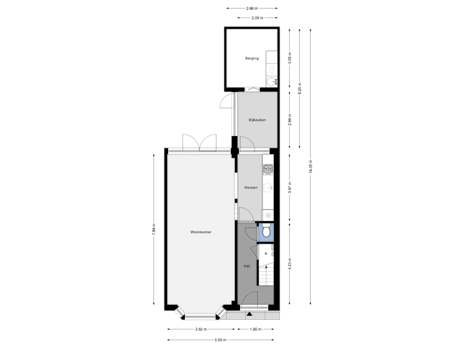 - 35 m² (10,40 meter diep en 5,44 meter breed)