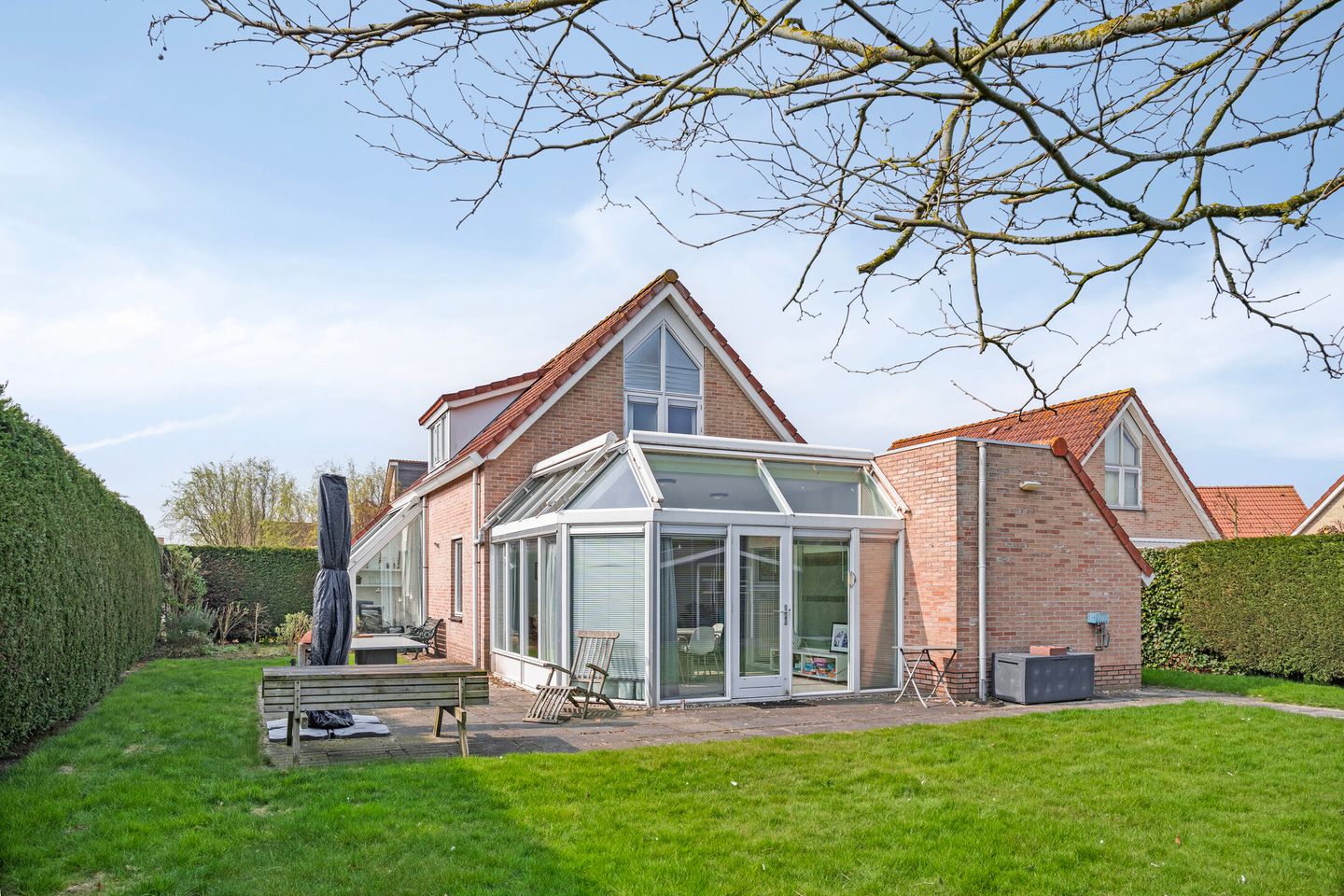De ruime, onderhoudsvriendelijke achtertuin is gelegen op het oosten en beschikt over een mooi terras, ideaal voor het creëren van een gezellige zithoek. De woning heeft daarnaast een royale oprit en een vernieuwd tuinhuis uit 2018.
