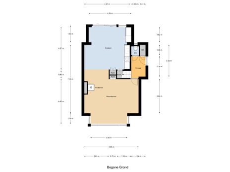 Keuken: 4,57 x 4,91/4,59m.