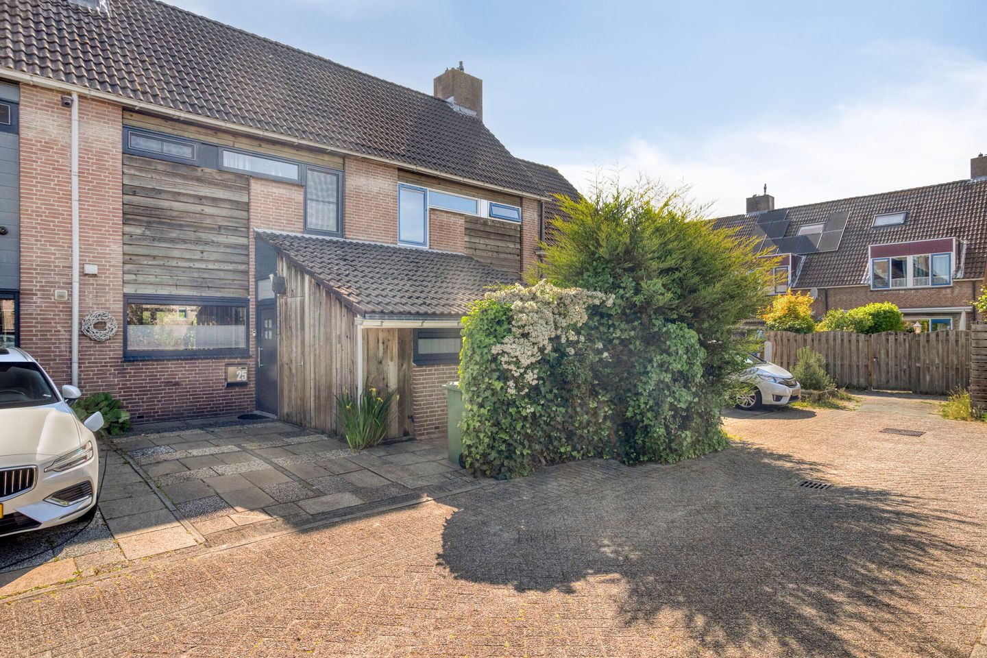 De voortuin biedt de mogelijkheid om de auto op eigen terrein te parkeren. Daarnaast bevindt zich hier een stenen berging, voorzien van elektra en een wateraansluiting aan de voorzijde, ideaal voor extra opslag of het aansluiten van apparatuur.